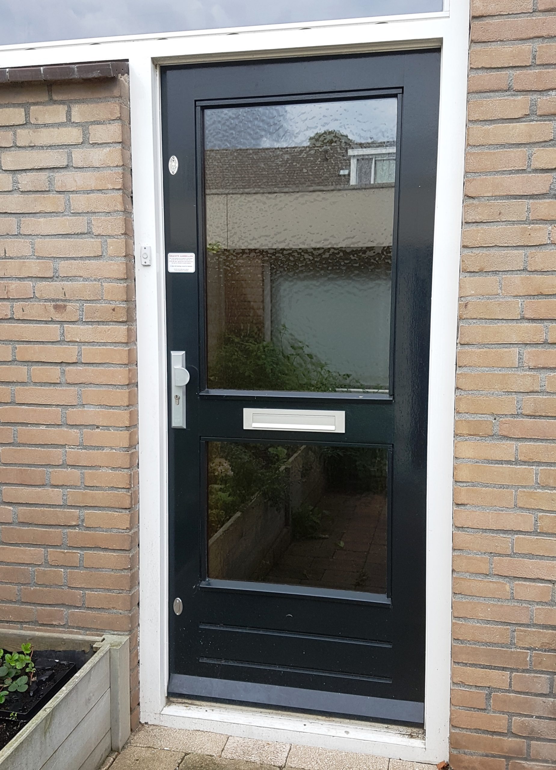 Deuren met 3 puntsluiting, anti inbraak scharnieren en inbraakwerend beslag geplaatst.